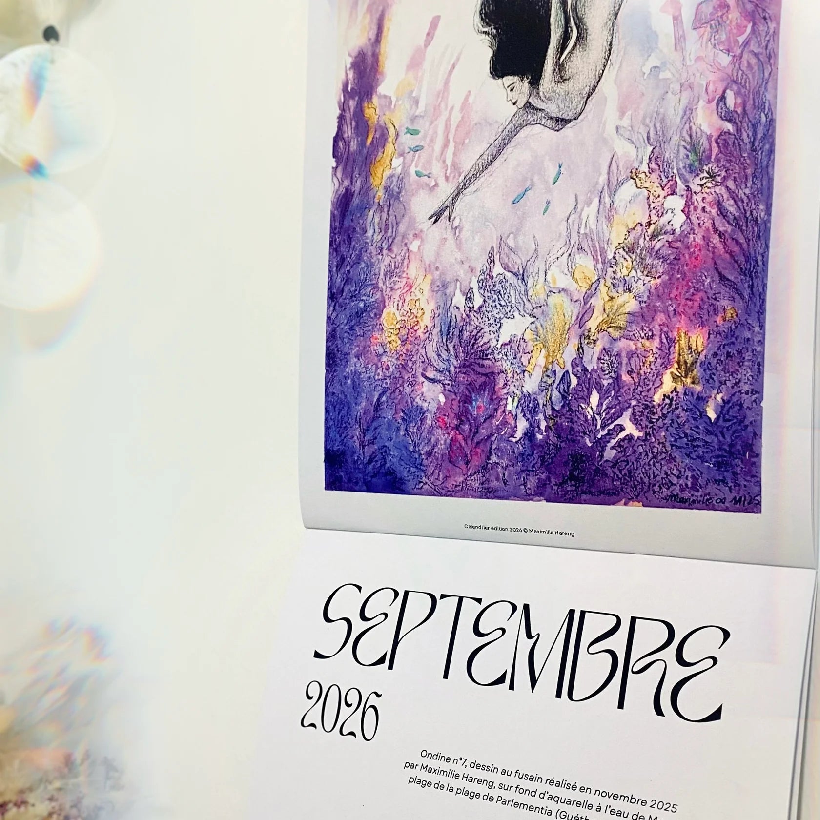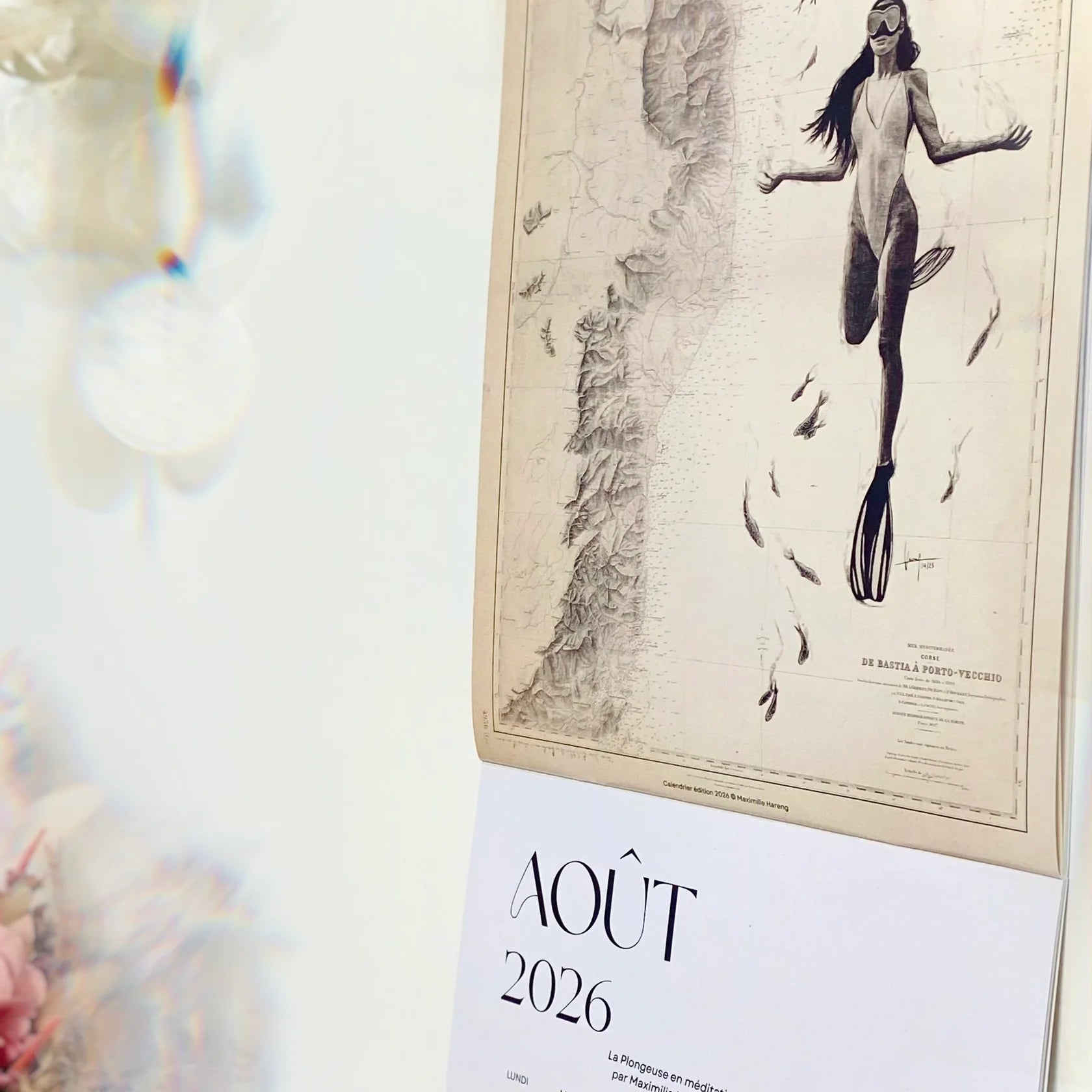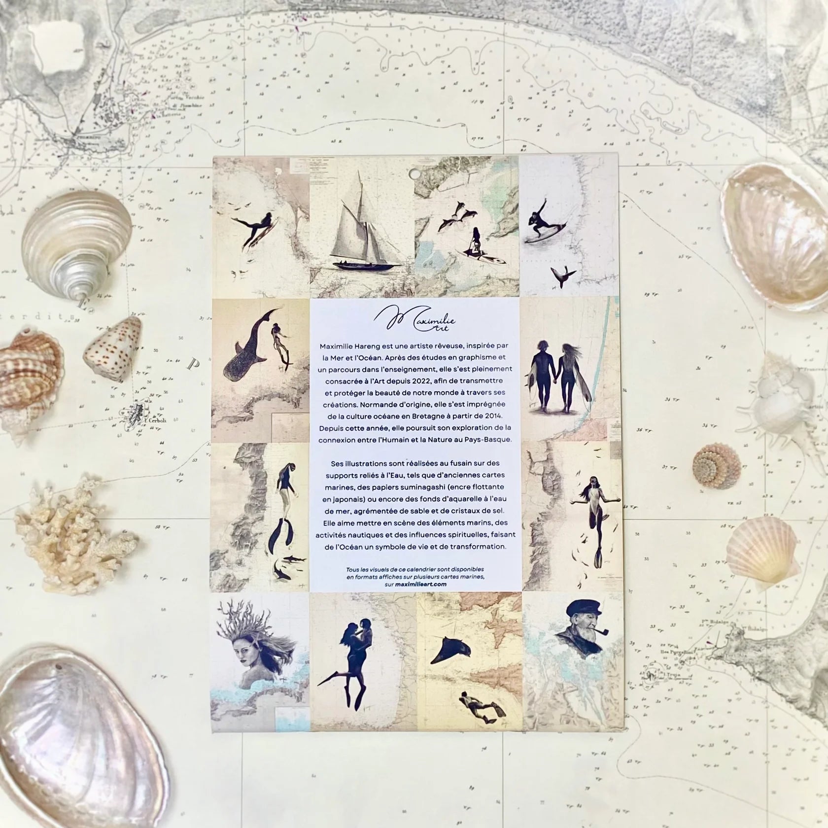 Plongez dans l'univers poétique et marinde Maximilie avec ce magnifique Calendrier Mural 2026 ! Chaque mois est une invitation à l'évasion, illustrée par des dessins réalisés au fusain sur de véritables cartes marines anciennes ou sur des fonds peints avec de l’eau de mer. Un objet d'art unique qui rythmera votre année !