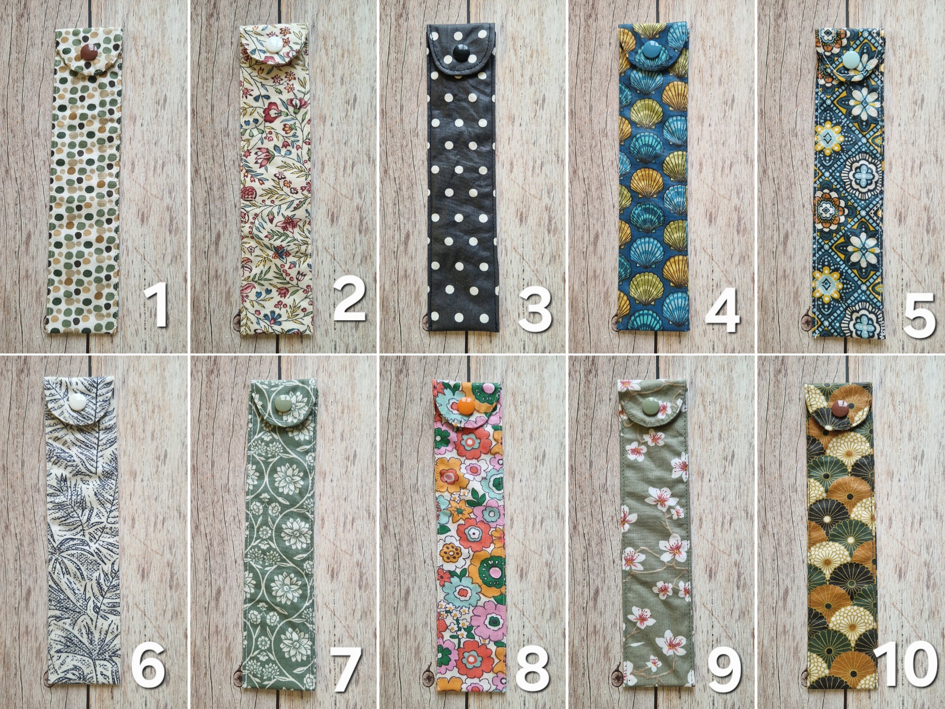 Fabriquée en coton enduit certifié OekoTex, il s'agit d'un matière légère et déperlante. Grâce à son tissu imperméable, la pochette se rince à l’eau facilement et sèche rapidement.