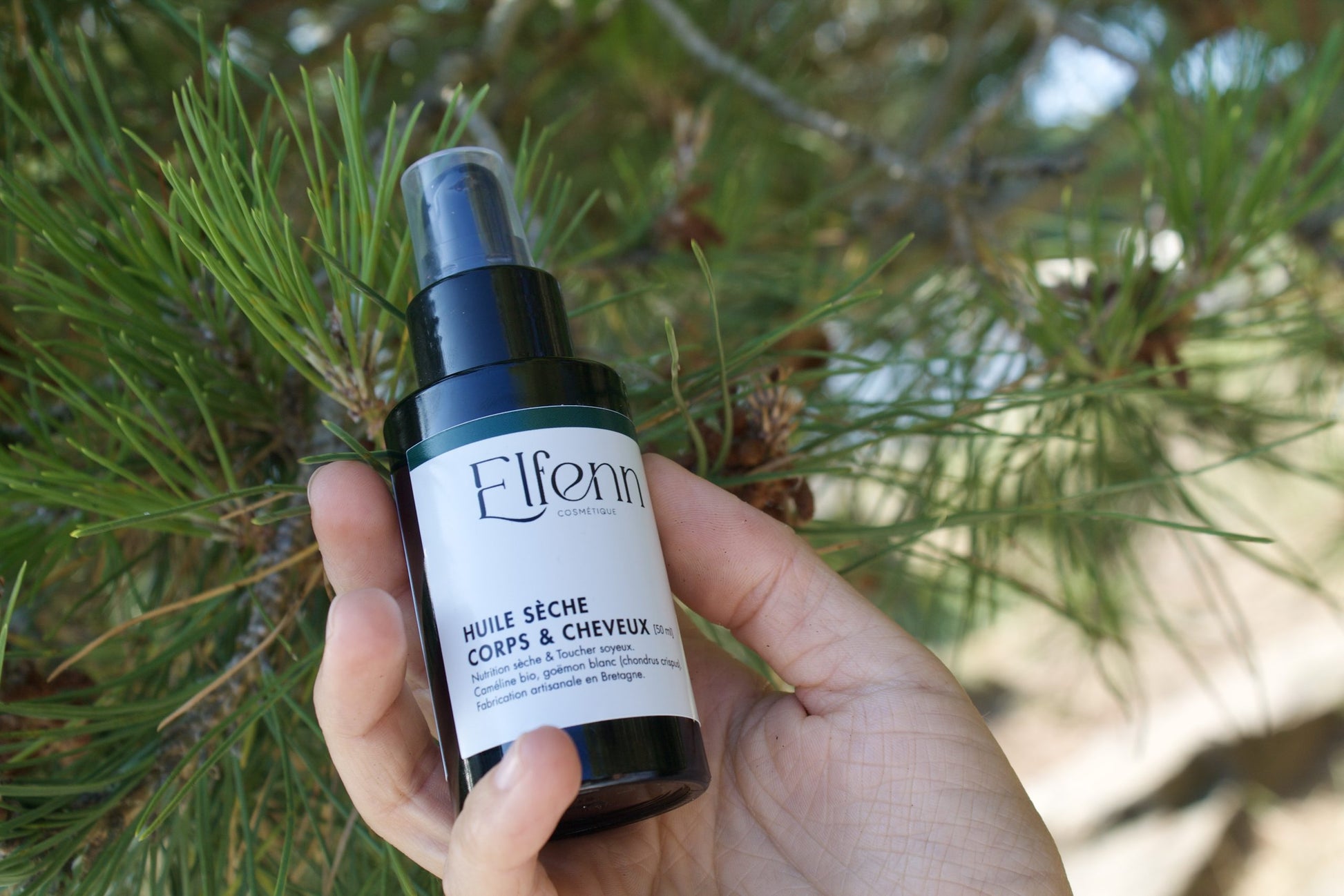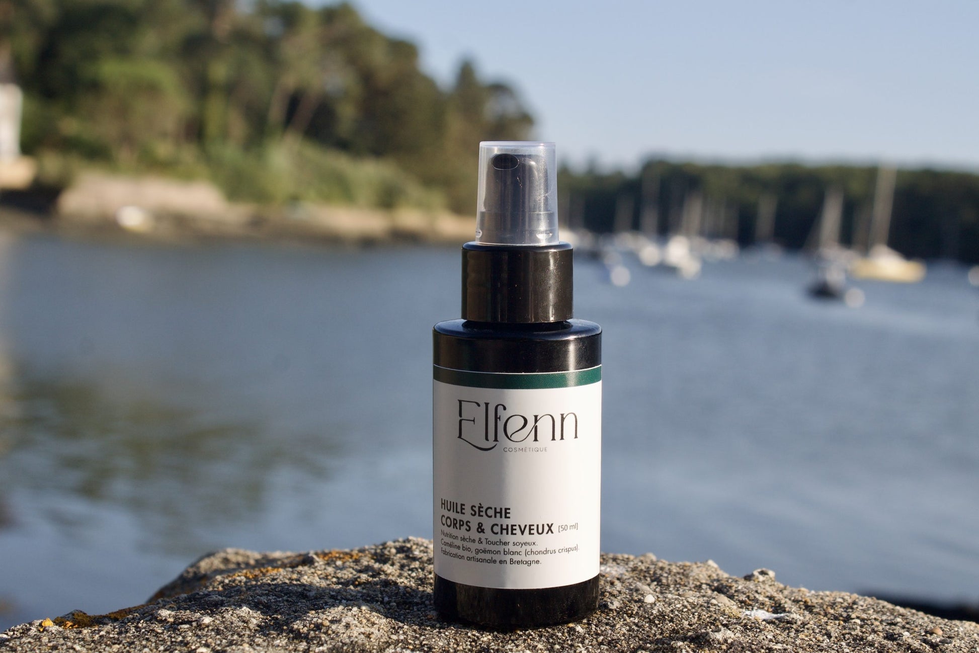 Extrait de chondrus crispus et huile végétale de caméline, extrait parfumant naturel, vitamine E (conservateur naturel), huile végétale de tournesol