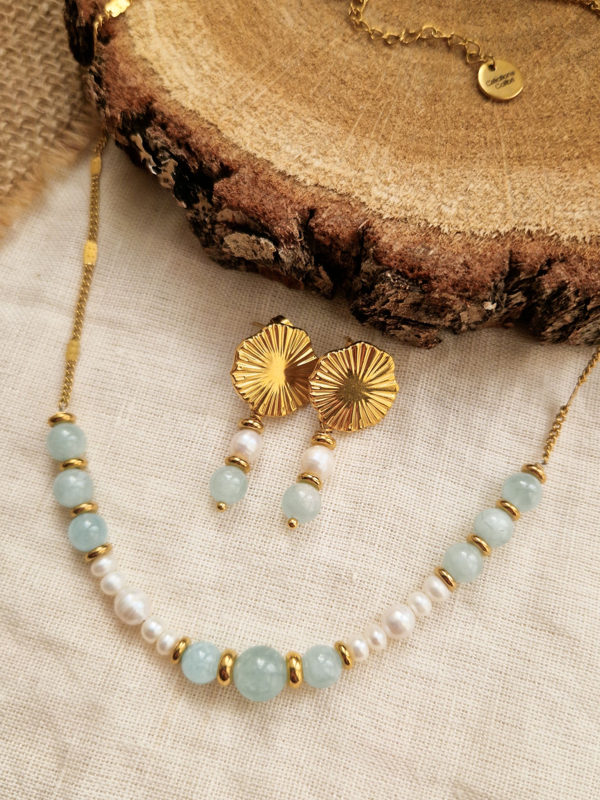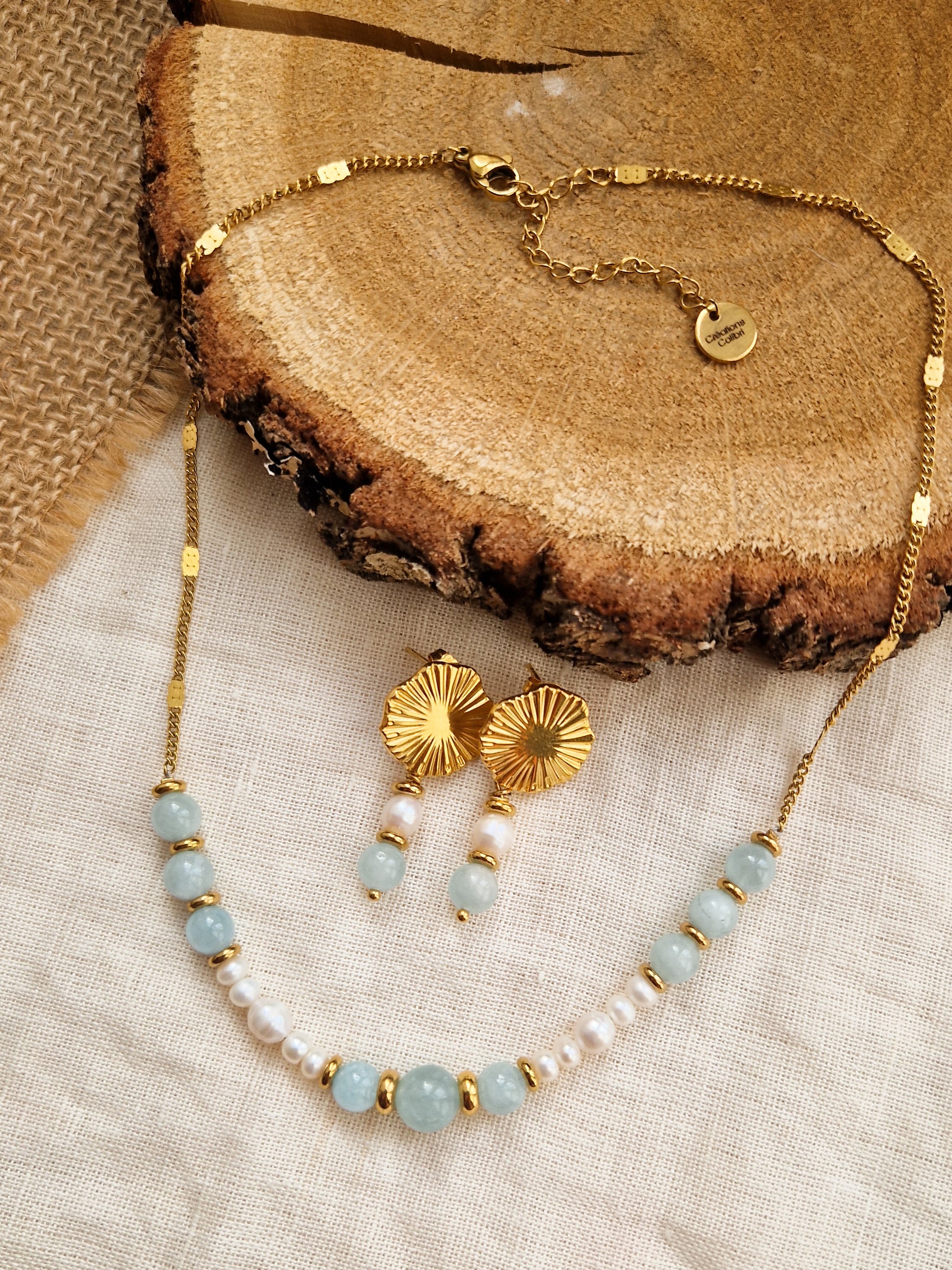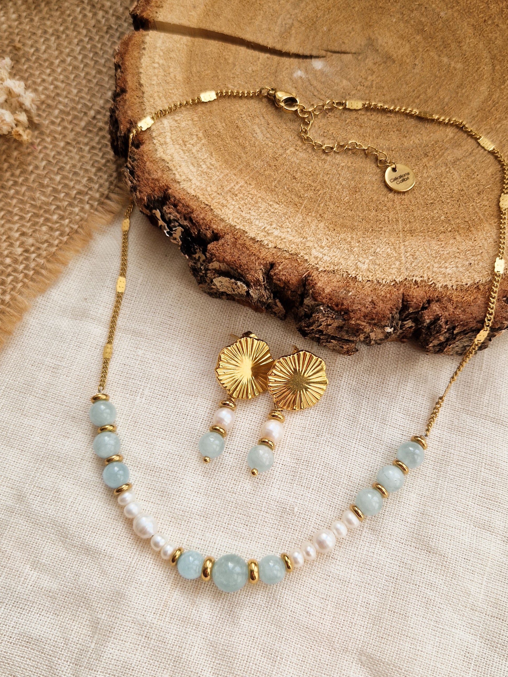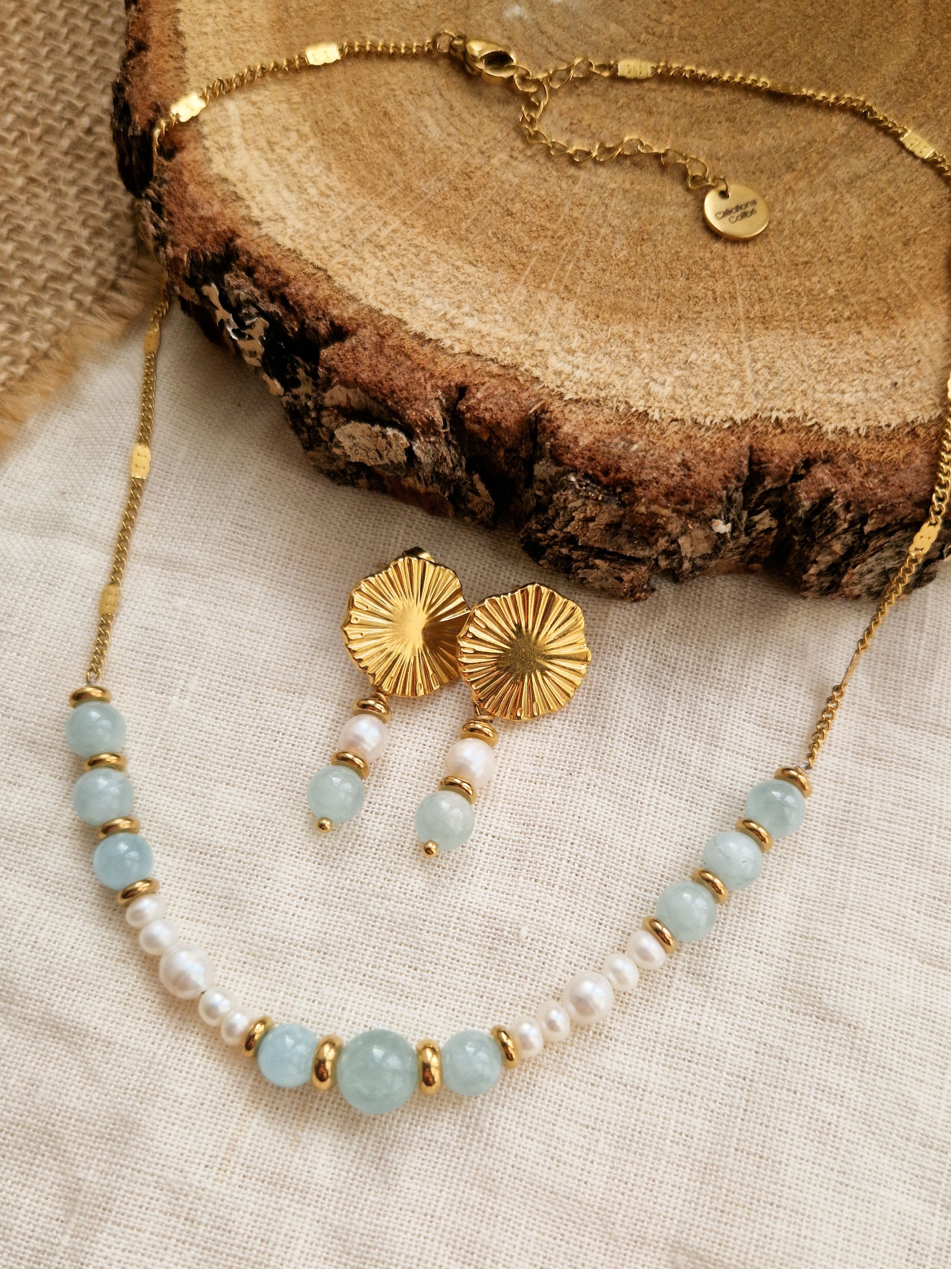 Parure Alizée - Aigue Marine et perles